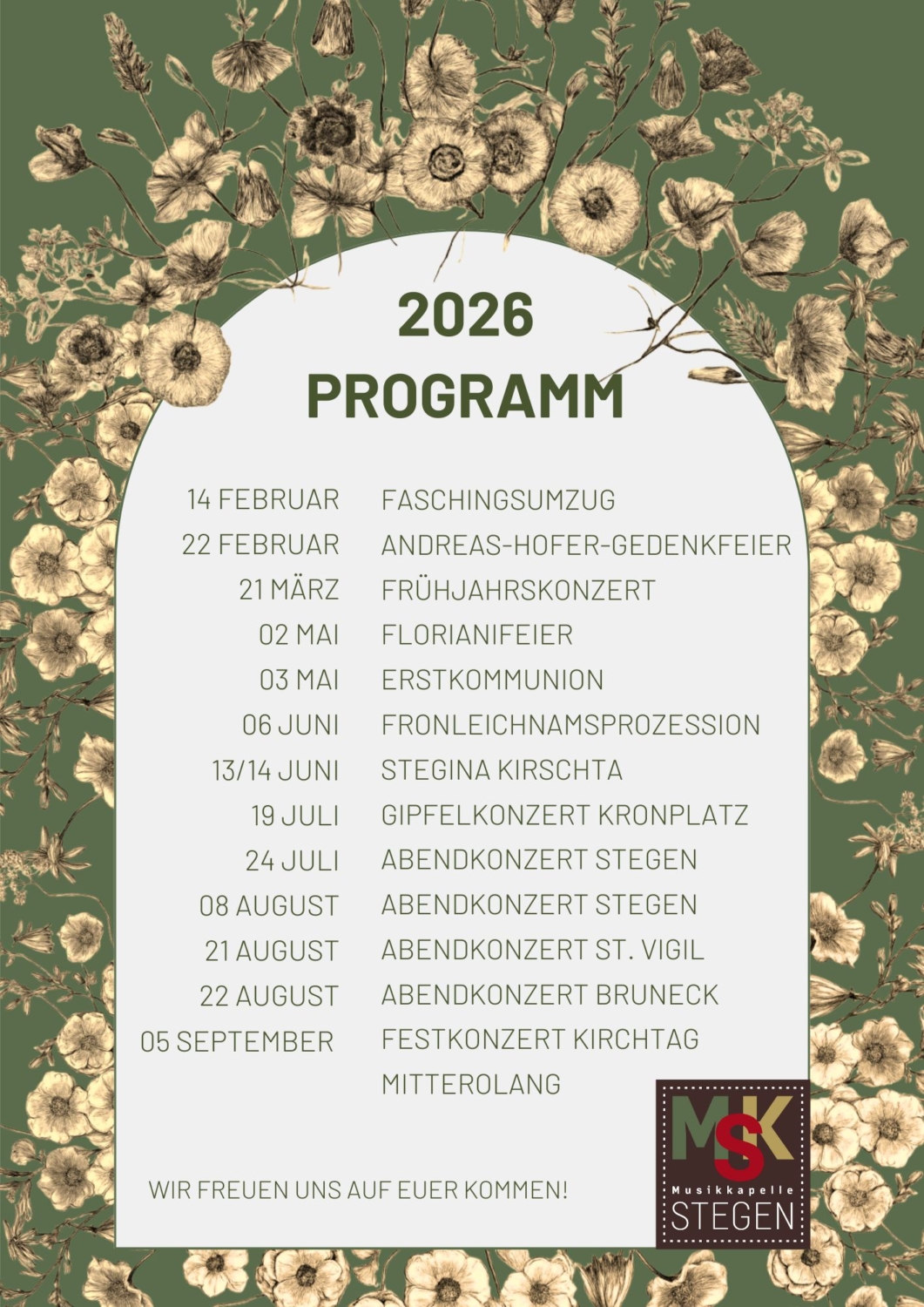 Die Musikkapelle Stegen und der Männerchor Stegen haben dieses Jahr am 19. November die Hl. Messe für ihre Schutzpatronin der Musik, der Hl. Cäcilia, gemeinsam gestaltet